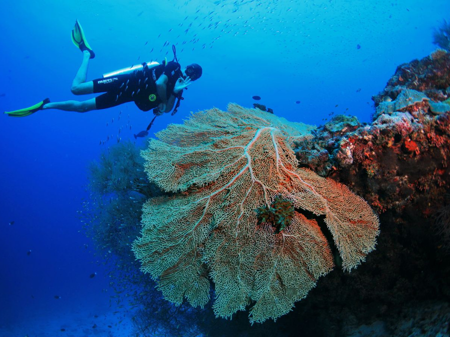 A szigetvilág igazi búvárparadicsom: káprázatos színekben pompázó halak úszkálnak a víz alatti korallerdőkben. Találkozhatunk delfinekkel, sőt cápákkal is, még sincs miért aggódnunk, a szirti és dajkacápák nem támadnak emberre. A szigetek környékén – szerzonálisan – rendre feltűnik a víz alatti világ két leghatalmasabb lakója, az ördögrája és a cetcápa. Planktonevők, nem vérszomjasak.